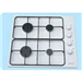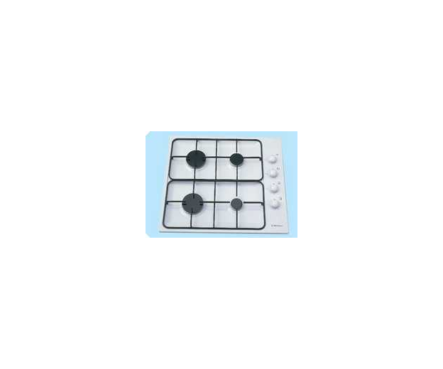 GHK11W white enamel square cooktop with 4 burners, battery ignition and a two piece trivet.