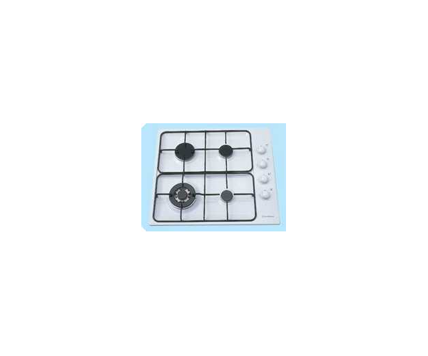 GHK16W white enamel square cooktop with 4 burners including wok burner with electronic ignition.