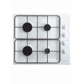 GHL11W white enamel square cooktop with 4 burners, battery ignition and a two piece trivet.