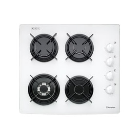 GHL12S stainless steel square cooktop with 4 burners, electric ignition and enamel trivets.