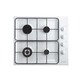 GHL17W white enamel square cooktop with 4 burners including wok burner, flame failure device (FFD) on all burners with electronic ignition.