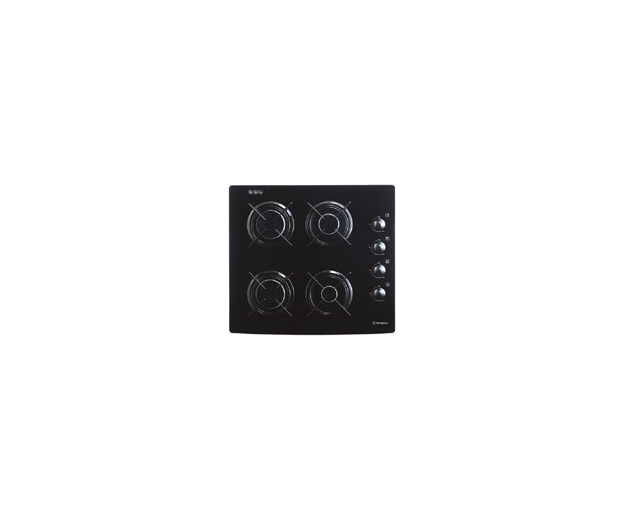 GHL24K black gas cooktop in a square shape with PBE (Push Button Electronic) ignition & 4 individual trivets.