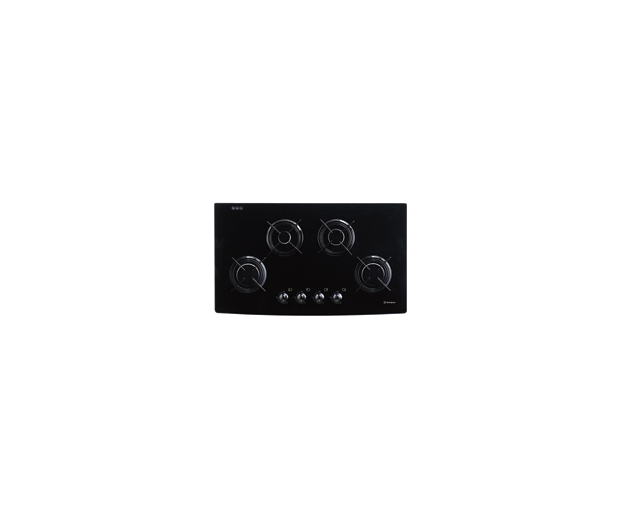 GHL44K black, rectangular glass cooktop with 4 burners, electronic ignition and individual trivets.