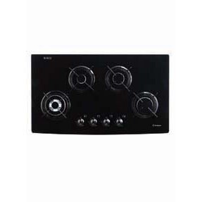 GHL46K black, rectangular toughened glass cooktop, with electronic ignition and 4 gas burners including a triple ring wok burner.