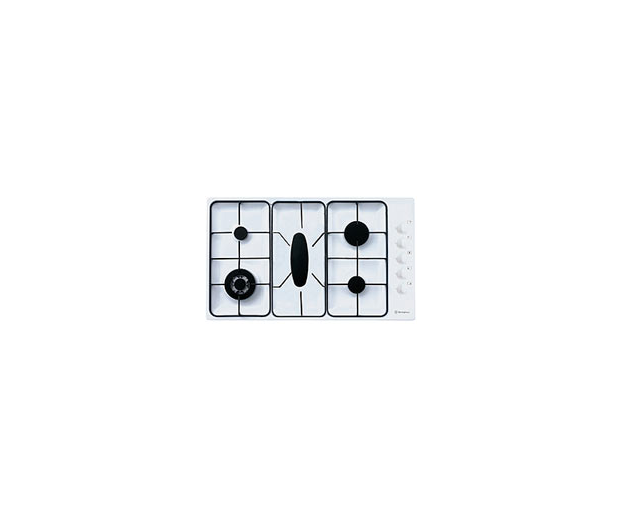 GHL95W white enamel rectangular cooktop with 5 burners including centre fish burner and separate wok burner with electronic ignition.