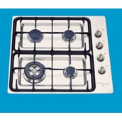 GHVJ765S stainless steel square cooktop with 4 burners including wok burner with electronic ignition.