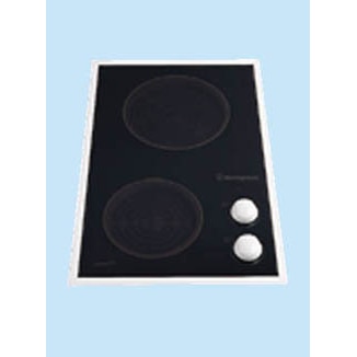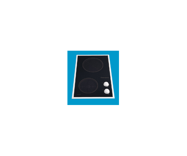 A ceramic cooktop in a domino shape, with a white trim and two quick response elements.