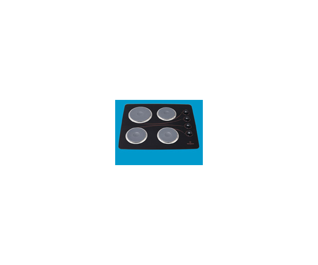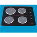 A black, square electric cooktop with a toughened glass surface and four cerashield hotplates. The edges are curved, with no trim.
