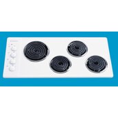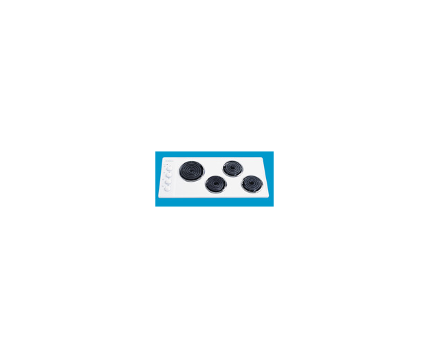A white, rectangular electric cooktop with a durable enamel surface and four coil elements.
