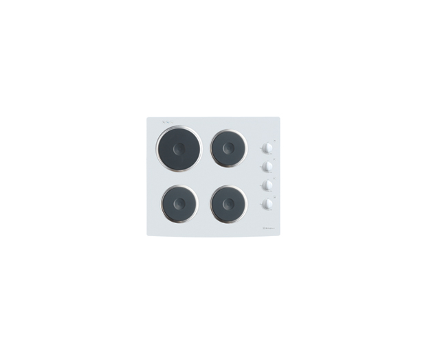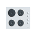 PHL266W white, square electric cooktop with a toughened glass surface and four cerashield hotplates. The edges are curved, with no trim.