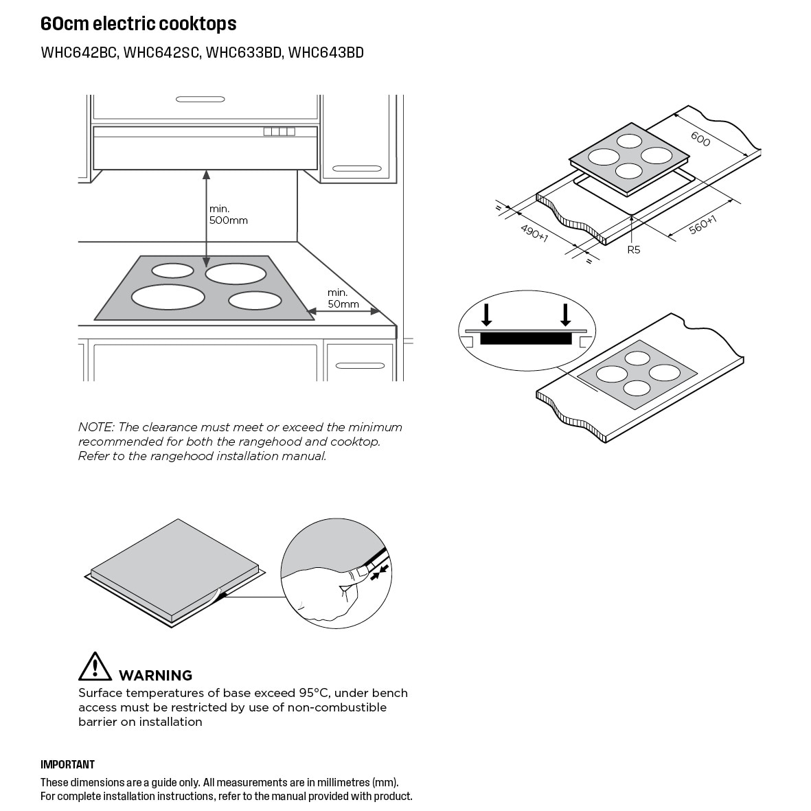 60cm 4 zone ceramic cooktop with residual heat indicator, 9 power levels and easy clean ceramic surface.