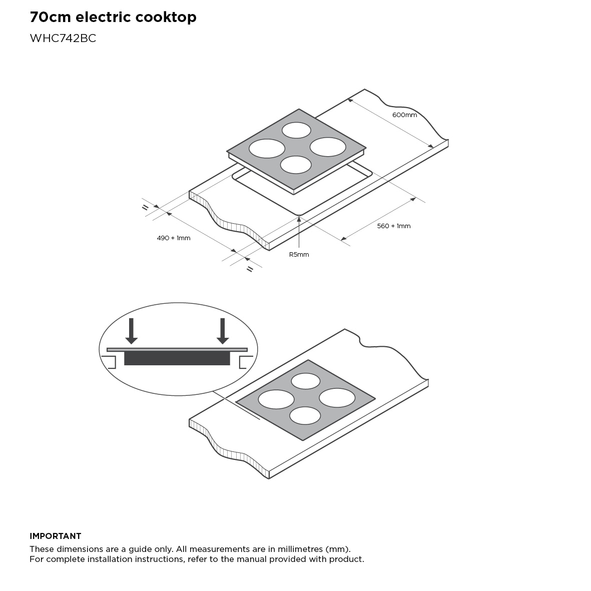 70cm 4 zone ceramic cooktop with knob controls, residual heat indicator and easy clean ceramic surface.