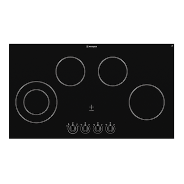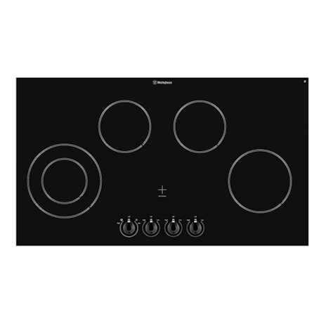 90cm 4 zone electric ceramic cooktop with easy clean ceramic glass surface and residual heat indicators.