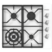 4 burners incl. wok/high power burner, electronic ignition, flame failure, cast trivets, easy clean white enamel.