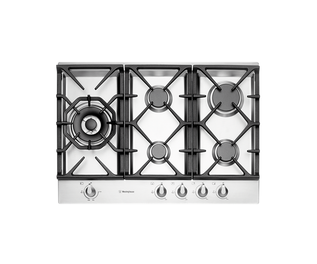75cm stainless steel gas cooktop with 17MJ/hr wok burner, dual valve control and FamilySafe™ cast iron trivets.