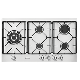 90cm stainless steel gas cooktop with FamilySafe (TM) trivets, easy ignite under knob ignition, flame failure and high-powered wok burner.