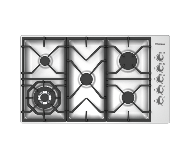 5 burners incl. wok/high power burner, electronic ignition, cast iron trivets. ONLY AVAILABLE COMMERCIALLY