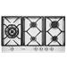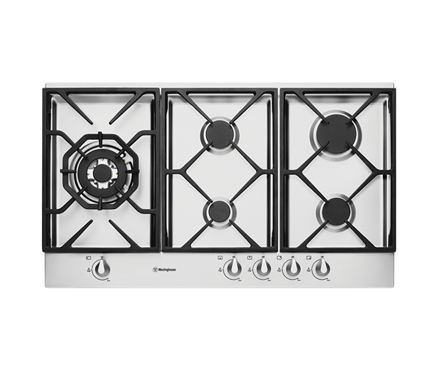 90cm stainless steel gas cooktop with FamilySafe (TM) trivets, easy ignite under knob ignition and FamilySafe (TM) flame failure device.