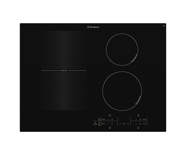 70cm black ceramic induction cooktop with FamilyFlex(TM), touch on glass controls, pause and QuickCook(TM) timer function.