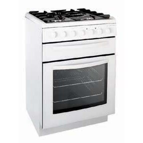 DSL635W 600mm white electric freestanding integrated cooker with 82 litre gross capacity, gas cooktop, separate grilling compartment and wok burner.