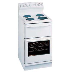 PAJ144W conventional 540mm upright range with oven light, 60 minute timer, separate grill, 4 Cerashield hotplates and lift off enamel oven door with window.