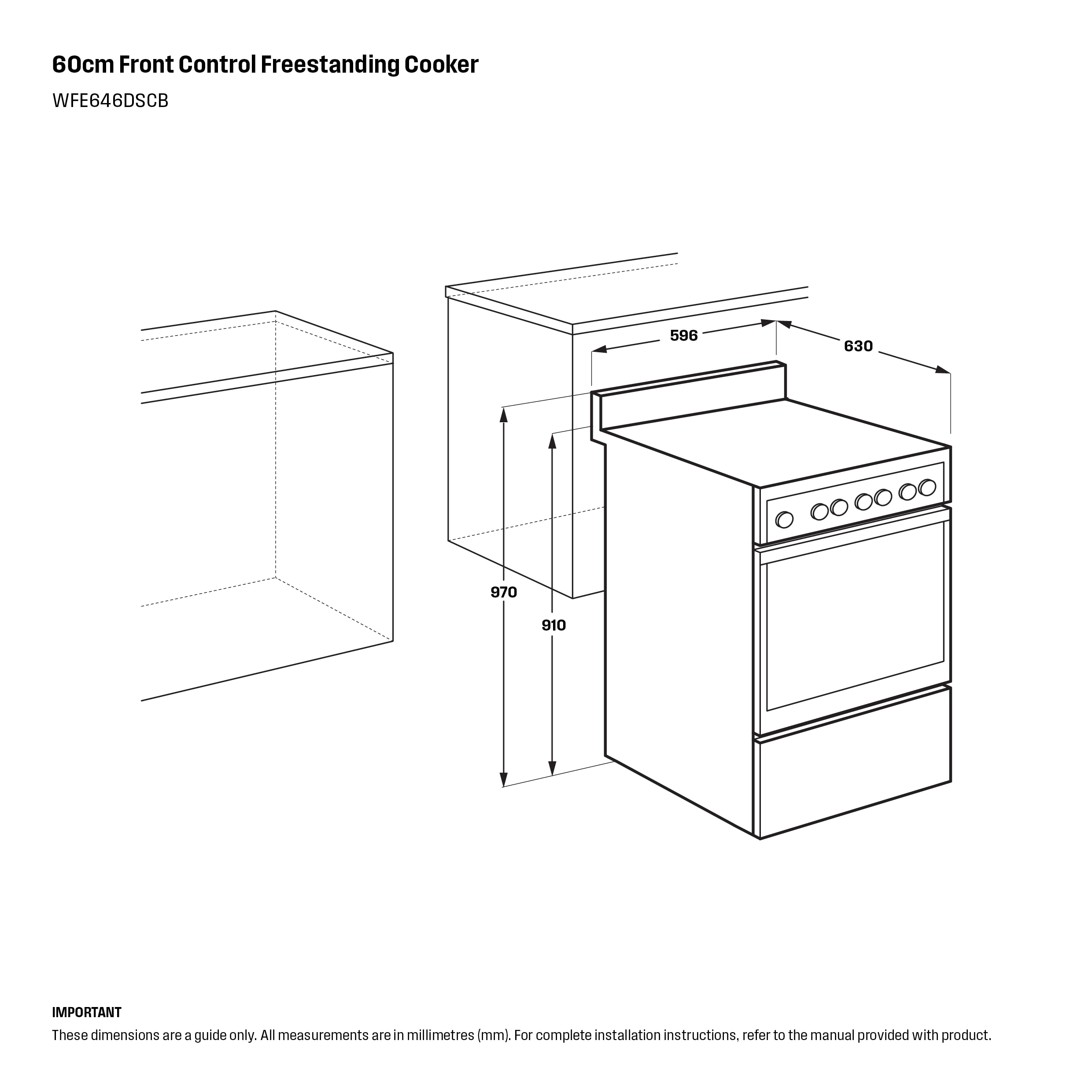 60cm dark stainless steel electric freestanding oven with multi-function 7 fan forced oven with AirFry, 120 minute timer with ringer, 4 zone ceramic cooktop with dual zone and hot surface indicator.
