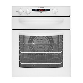 GGN475W multifunction gas underbench oven with separate grill, white finish, 3 cooking functions in top oven and programmable clock/timer.
