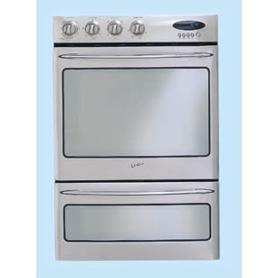 PDVJ792S stainless steel with a mirror finish 'Virtuoso' double oven with a multifunction main oven and separate grill which can be used for conventional baking, features a electronic programmable timer, roast probe and a curved reflective inner glass.