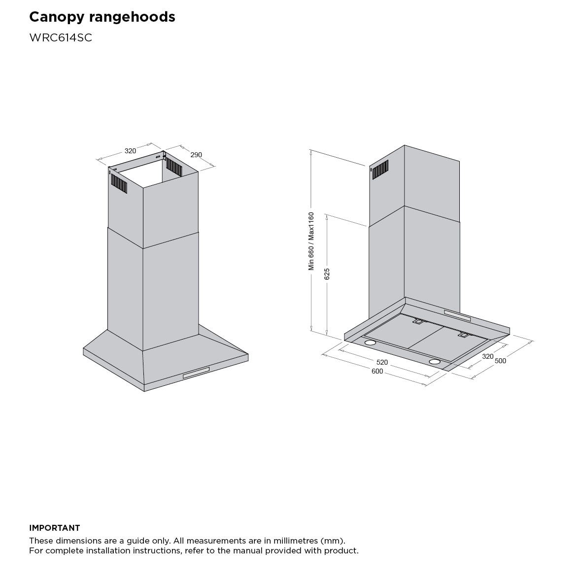 - 600 mm (W)