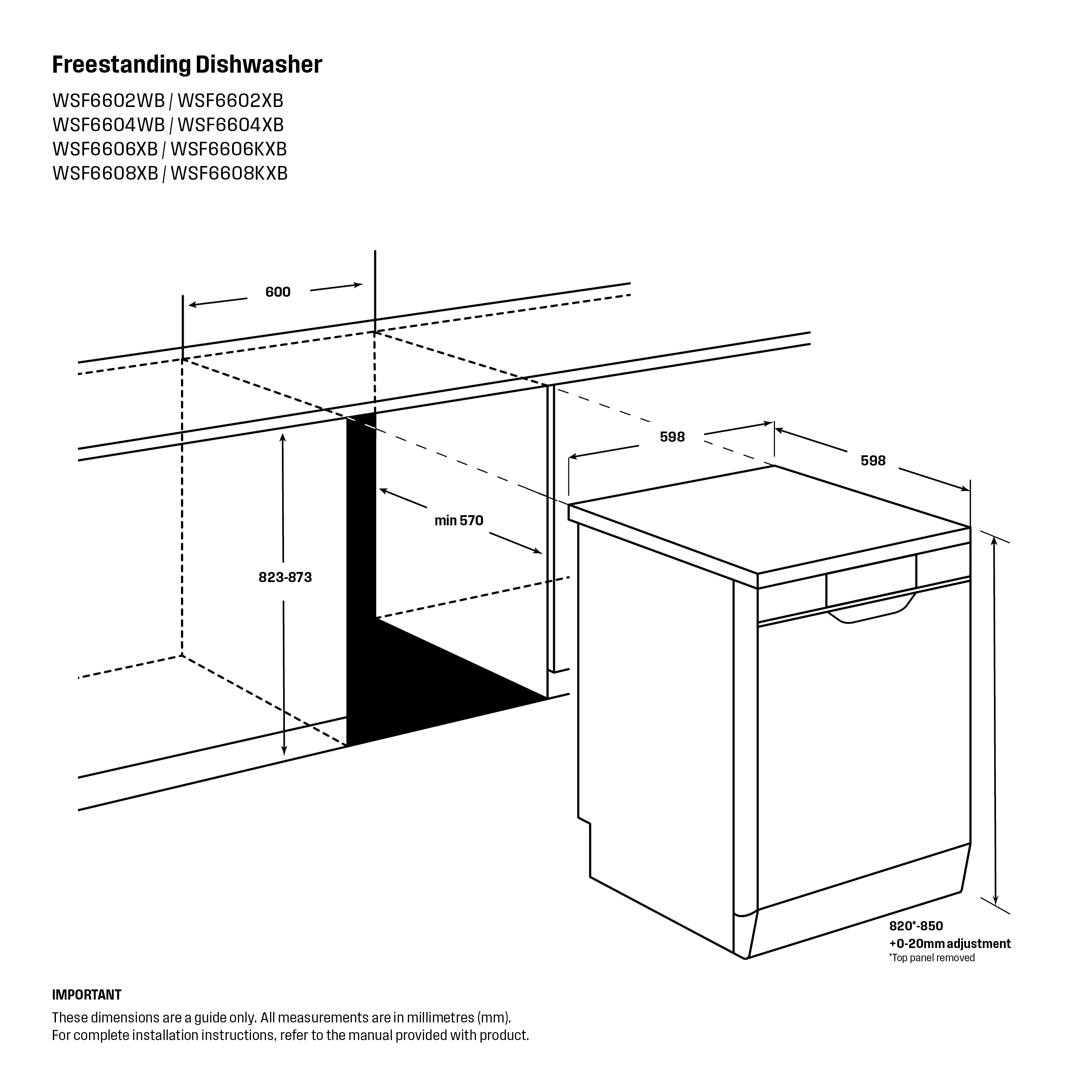 60cm freestanding dishwasher, white, with 14 place settings, 6 wash programs including Fast 30' and SensorWash, FastDry system, half load option, adjustable upper basket and 46dB operation