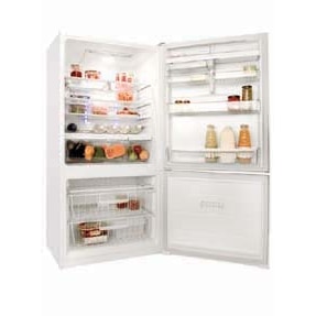 BJ515V frost free 510 litre, bottom mount refrigerator with a white finish, external electronic controls and multi airflow, chill stream cooling systems and right handed door opening. It also features 2 half width adjustable door bins, full width door bin and a bottle bin w/ bottle fingers.
