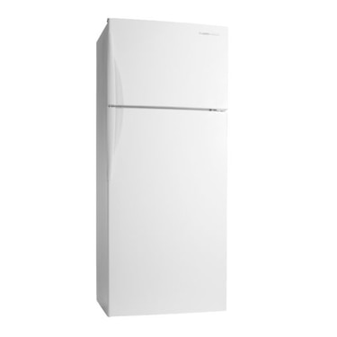 RJ392V white, top mount, frost free refrigerator/freezer with a 390 litre capacity. It also features 2 half width adjustable door bins, a full width can bin and a full width large bottle bin with bottle fingers.