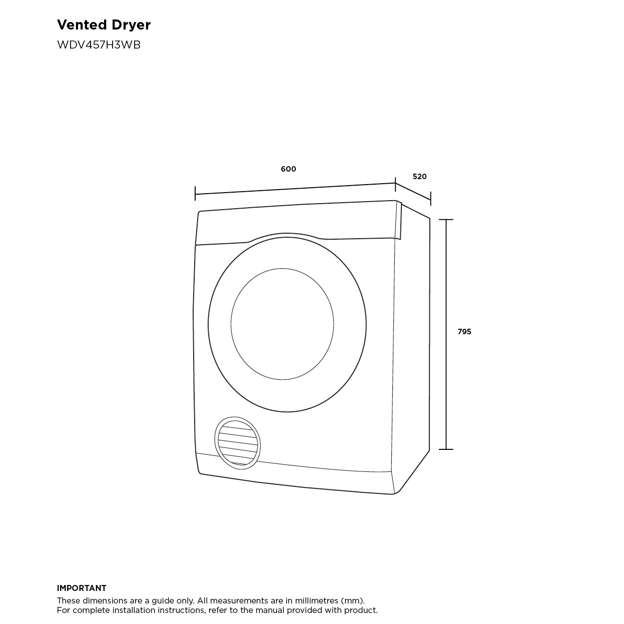 4.5kg vented tumble dryer comes with anti-tangle reverse tumbling action for even drying results. Other features include time drying and warm / hot setting.